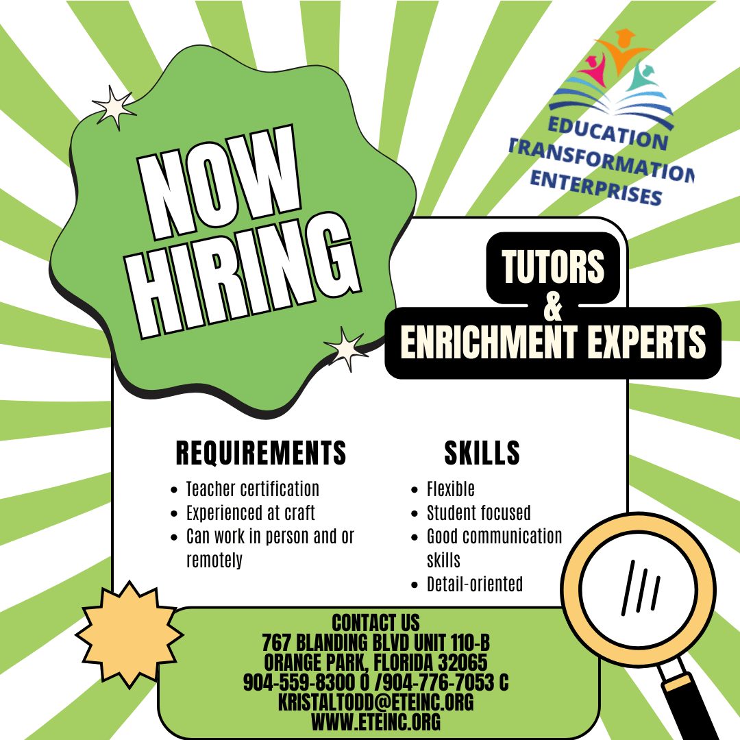Education Transformation Enterprises is seeking Tutors/Certified Teachers (K-12, Part-Time and Full-Time Opportunities)